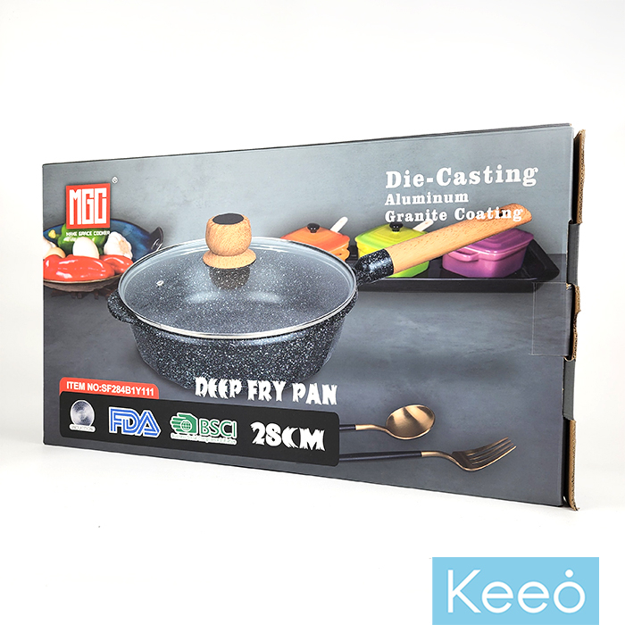 - PFOA Free - Lapisan ANTI LENGKET MARBLE/GRANIT - Bisa digunakan di SEMUA JENIS KOMPOR (Gas, Induksi, Listrik) - Gagang dari Bakelite Soft Touch, AMAN, tidak mudah terbakar dan tidak licin - Sertifikasi LFGB, Sgs, FDA - Diameter atas 28 cm - Tinggi 8 cm