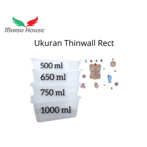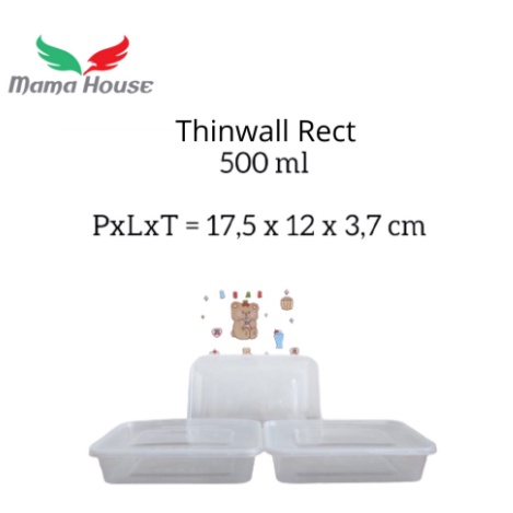Spesifikasi Ukuran Thinwall : * 500Ml = 17,5 x 12 x 3,7 cm * 650Ml = 17,5 x 12 x 5 cm * 750Ml = 17,5 x 12 x 5,5 cm * 1000Ml = 17,5 x 12 x 7,5 cm Bahan Thinwall : Plastik Food Grade