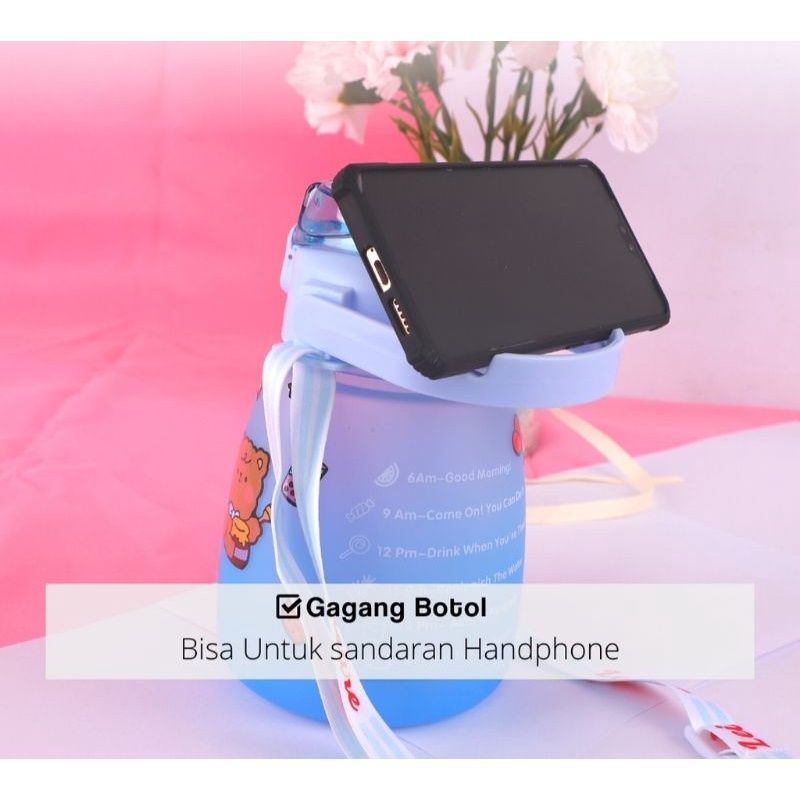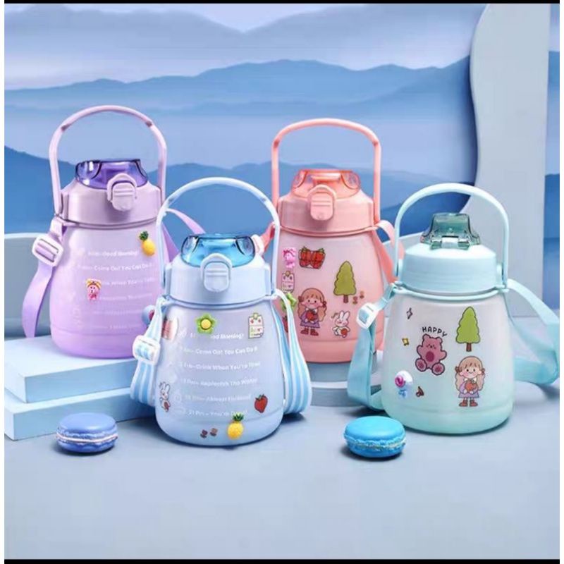 Fitur: - Material Plastik yang Unbreakable (Lifetime Warranty) - Food Grade ( Aman untuk Makanan / Minuman) - Praktis, mudah digunakan dan dapat di bawa kemana-mana - Kapasitas yg besar yaitu 1300ml - Include Tali + Sedotan dan Gagang - Tutup yg aman karena sistem Flip Up with Lock - Produk ini aman. - pake tali - dapet setiker 2D & 3D