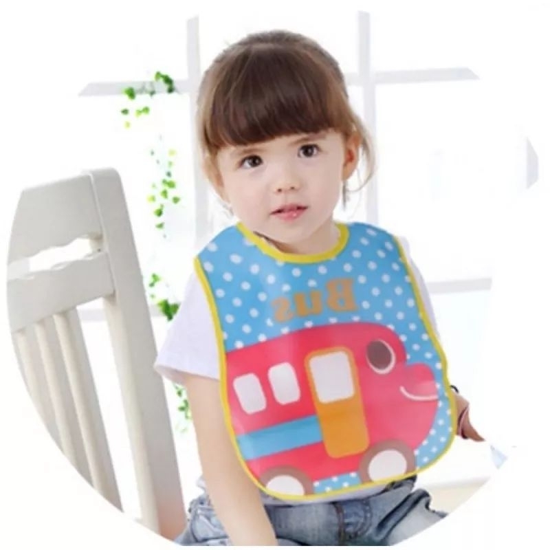 - Bahan plastik waterproof - Mencegah makanan / minuman menempel pada baju bayi - Material yang lembut, nyaman untuk bayi - Ada kantong untuk menampung makanan / minuman yang jatuh - Motif yang lucu dan cerah - dapat menutup bagian depan baju bayi - Mudah dibersihkan