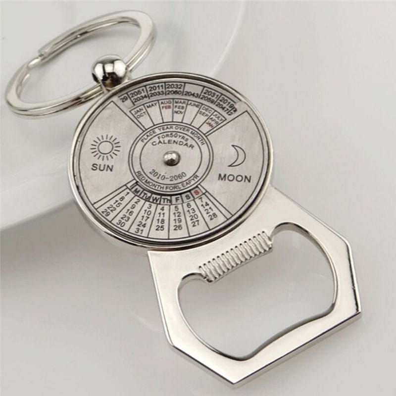 100% Brand new and high quality Perpetual Calendar with Bottle Opener metal keychain, years from 2010 to 2060 Can check the date and open bottle conveniently Easy and compact, light weight to carry with your keys Special design which makes this Keychain a perfect gift for others Companion of your keys A major highlight of your keychain