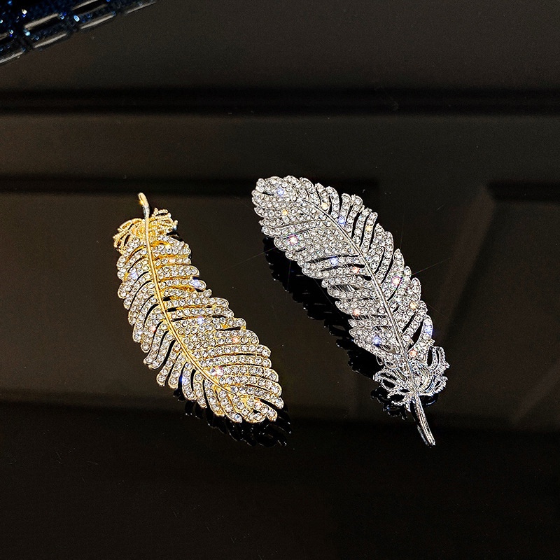 Aksesoris Fashion > Aksesoris Rambut > Jepitan & Pin Rambut > 【MHANG】Jepit Rambut Bulu Mewah Bertatahkan Berlian Baru Klip Poni Gadis Sayap Emas Yang Modis Dan Romantis