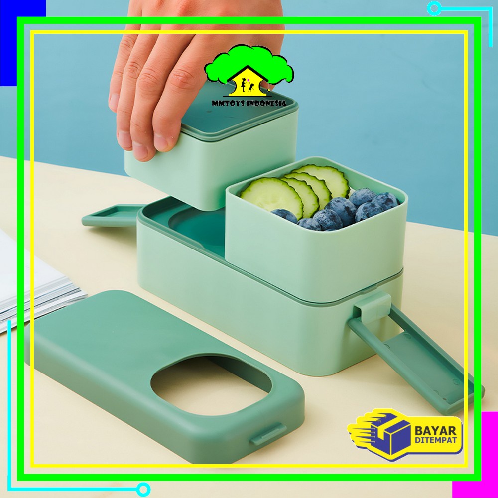 MI-C779 Kotak Makan 2 Tingkat Portable 1050ML Ada Sauce Cup / Lunch Box 2 Layer / Rantang Makanan Set Anti Tumpah