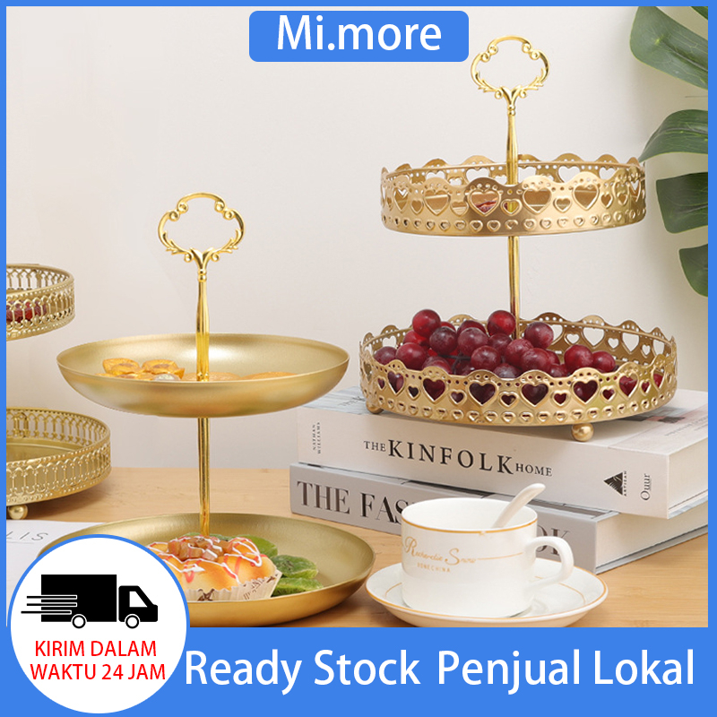 Perlengkapan Rumah > Peralatan Dapur > Tempat Penyimpanan Makanan > Mi.more 2Layer Fruit Tray Buah Snack Gold Storage Rack Pastry Fruit Cake Organizer Hollow Out Bedroom Countertop Decor