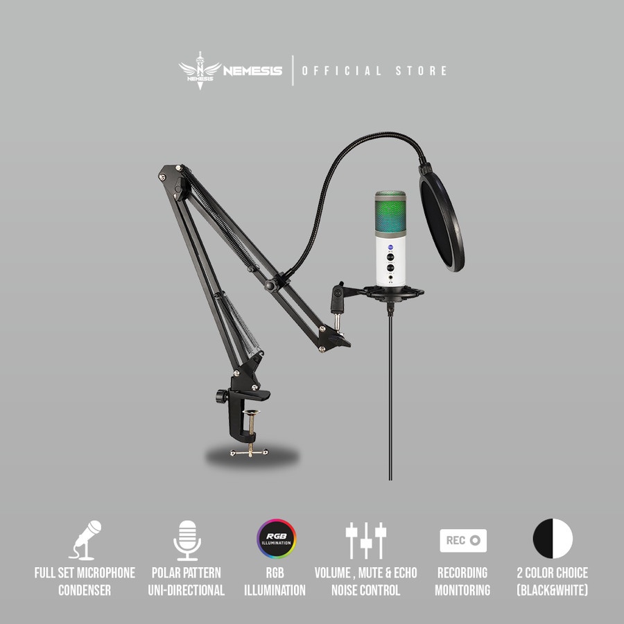 - Pollar Pattern : Unidirectional - 2 Audio Mode ( Normal & Noice Cancelling ) - Audio Output For Audio Monitoring - Volume Control for Audio Monitoring - Microphone Mute Button - RGB illumination - Fullset with all Accsesoris (Microphone, Table Clip, Mic Mount, Desktop Mic Arm, Wind Foam USB To USB Type A Cable, Pop Filter, Stand Mic, Shock Mount )