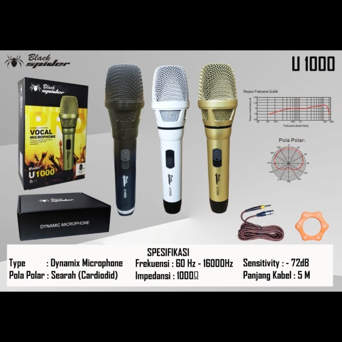Mic kabel sudah includ kabel mic bahan besi suara bulet dan empuk original blackspider
