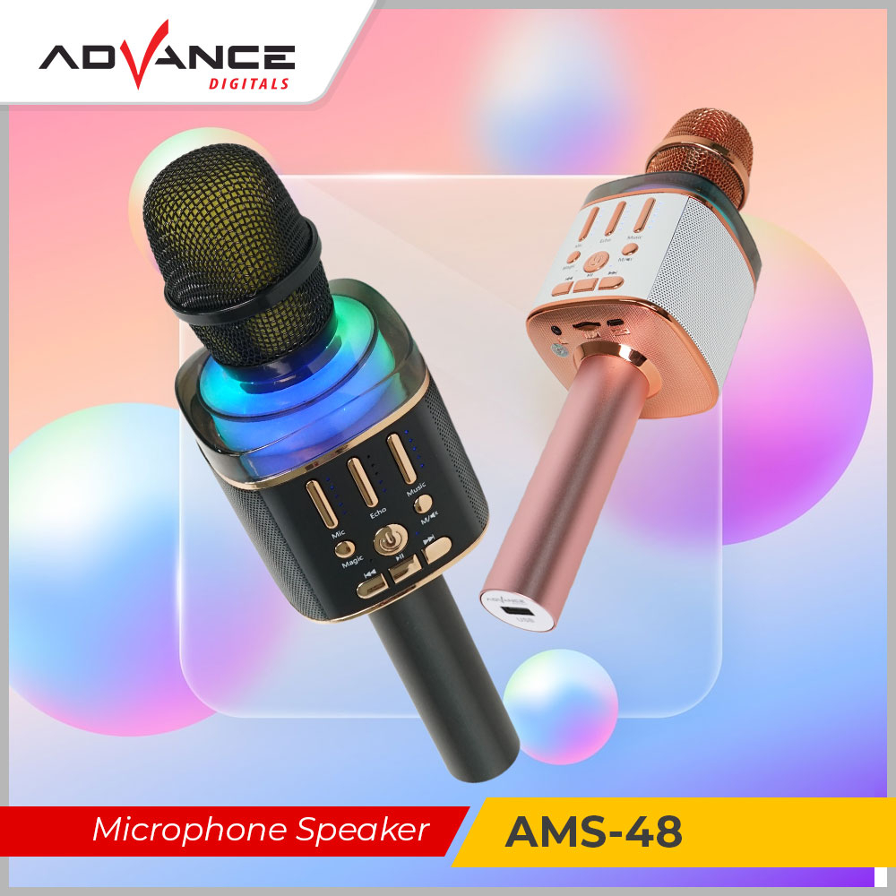 Detail Mic Karaoke Mikrofon ADVANCE Wireless Bluetooth Speaker AMS-48 Your browser does not support the video tag. Video perkenalan produk Mic Karaoke Mikrofon ADVANCE Wireless Bluetooth Speaker AMS-48. Sumber: Shopee.