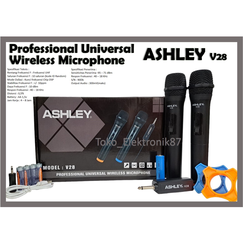 Mic Wireless Ashley V28 Microphone Dynamic Karaoke