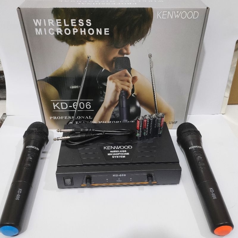 Detail produk dari Mic Wireless Double Kenwood KD 606 Microphone / Mik Tanpa Kabel MIC WIRELESS KENWOOD KD 606 SUARA JERNIH MANTAP BUAT KARAOKE PIDATO DLL DETAIL PRODUCT: - Double mic genggam 2 - Suara empuk dan mantap - Dilengkapi Riceiver - FREE batu bateray AA - Barang baru bersegel - Cocok sekali utk karaokean bersama teman dan Keluarga
