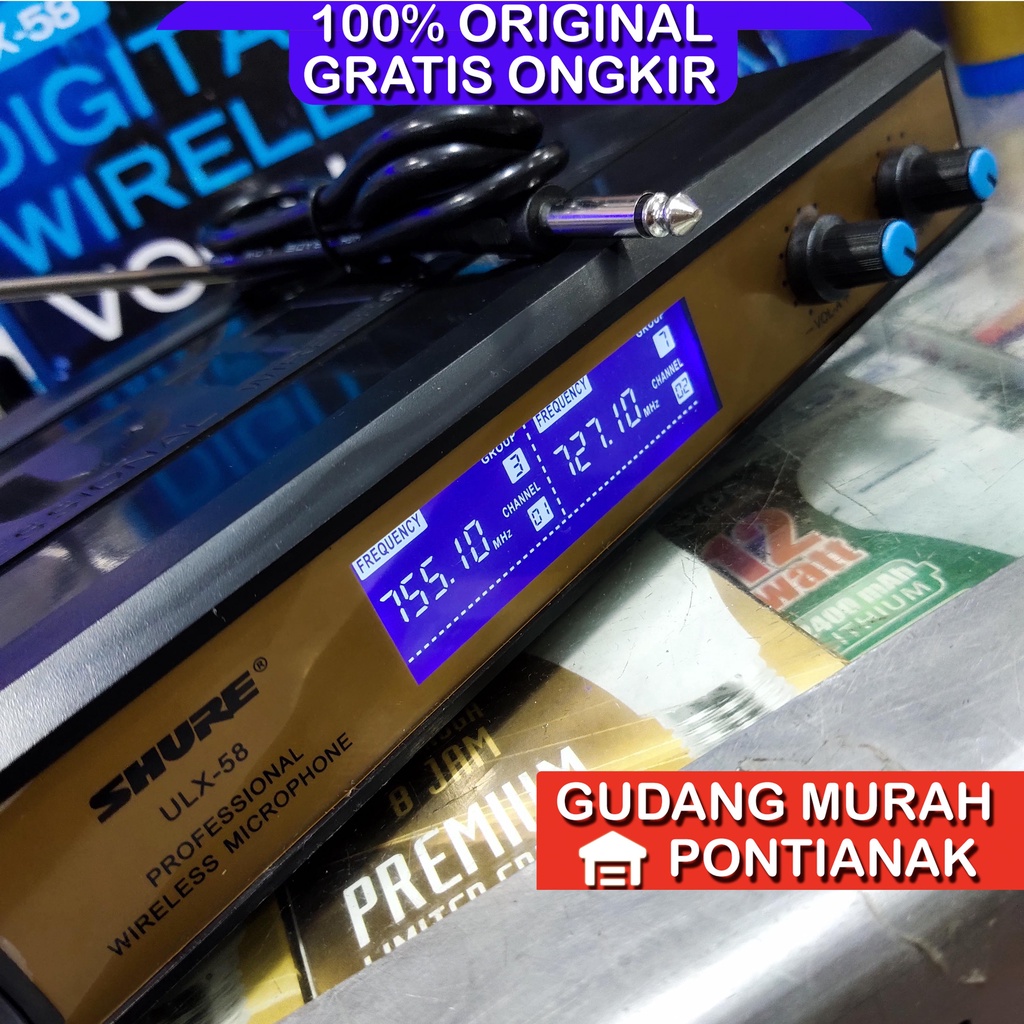 Microphone Double Wireless Merek : SHURE Type : ULX - 58 Channel : 2 Channel Mic Pegang Freq. : UHF