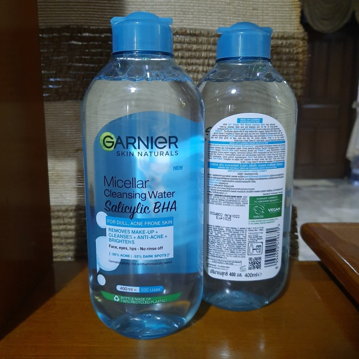 All-in-One Micellar Cleansing Water yang dapat membersihkan dan menghapus kotoran, debu, dan make-up dalam 1 kali usap dengan lembut dan tidak perlu dibilas. Cocok untuk semua jenis kulit, termasuk kulit sensitif. Garnier Micellar Cleansing Water, diperkaya dengan Micelles, dapat mengikat dan mengangkat debu, kotoran, juga make-up dari wajah, mata, dan bibir. Tektsturnya ringan seperti air, sehingga dapat menghilangkan kotoran dan make-up dari wajah secara lembut tanpa perlu dibilas. Formulanya tidak lengket di wajah, tidak berminyak, dan tanpa parfum sehingga cocok untuk semua jenis kulit termasuk kulit sensitif.