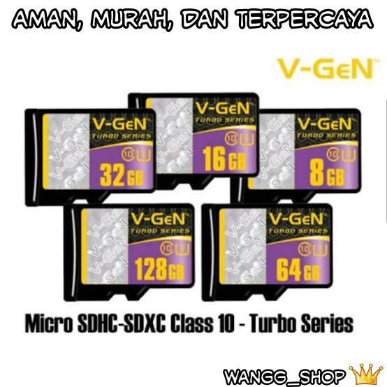 SELAMAT DATANG DI wangg_shop!!! Kenapa belanja di wangg_shop? 1. Karena kami adalah seller yang terpercaya 100% dengan kualitas dan kuantitas barang yang baik. Keamanan dan kepuasan pelanggan adalah prioritas toko kami. 👌👌 2. Admin kami sangat responsif dan sangat tanggap dalam menjawab pertanyaan, memberikan solusi hingga pelayanan terbaik apabila ada kendala/masalah dalam penggunaan produk. 👍👍 3. 💰Bisa COD/Bayar ditempat💰 anda ingin membeli produk kami? tetapi tidak ada ATM? malas ke indomaret/alfamart? TENANG SAJA, ditoko kami mendukung fitur COD (tidak semua toko punya fitur ini loh), cara nya sangat gampang, anda tinggal klik BELI SEKARANG, lalu isi alamat dan data diri, dan pilih kurir pengiriman JNT dan metode pembayaran COD! lalu CHECKOUT DEH :D. ⭐️100% BERKUALITAS⭐️ ----------------------------------------------------------------------------------------------------------------------------------------- Memory Card ORIGINAL (RESMI V-GEN) Micro SD V-GEN Class 10 - 8GB - 16GB - 32GB - 64GB TURBO SERIES SPEED UP TO 100MB/s