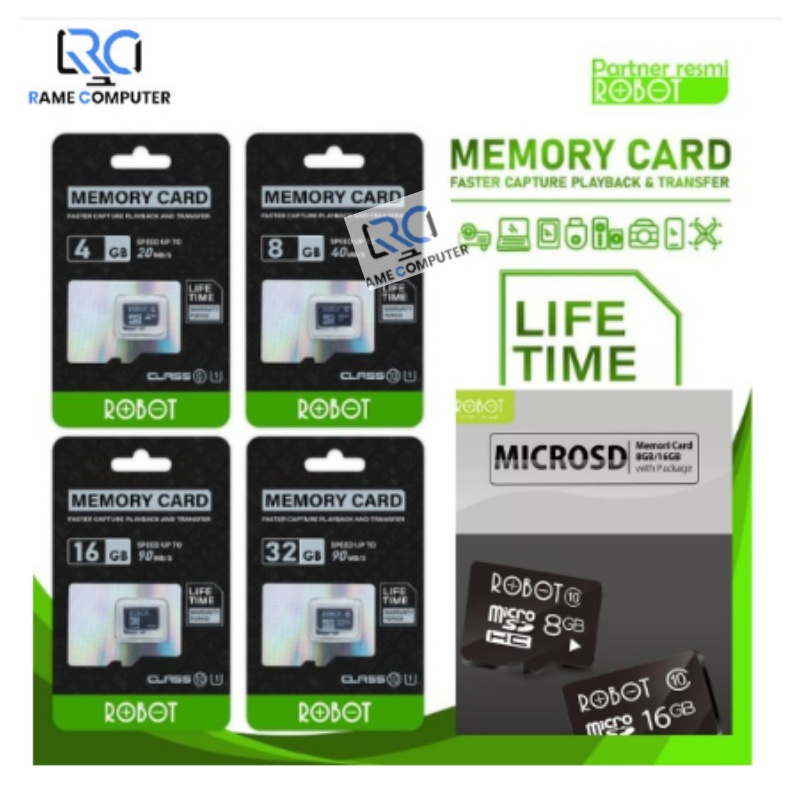 Deskripsi Micro SD ROBOT TF 4GB/ 8GB / 16GB Memory Card Kartu Memori HP Class 10 - Garansi ResmI 1 Tahun