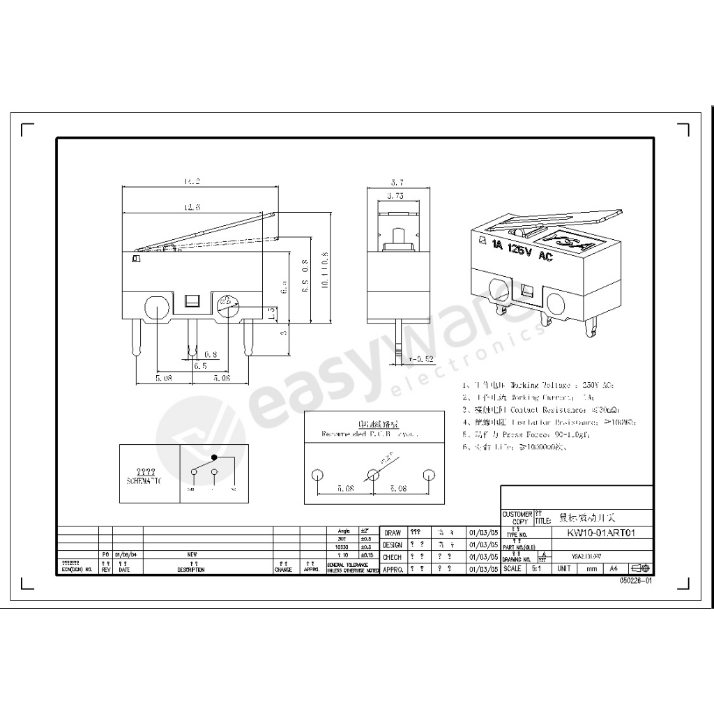 Micro Switch Limit Switch 1A 125V 3P MicroSwitch PCB