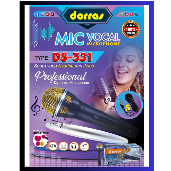 Microphone Kabel Profesional Dorras DS-531 Microphone Karaoke Berkualitas