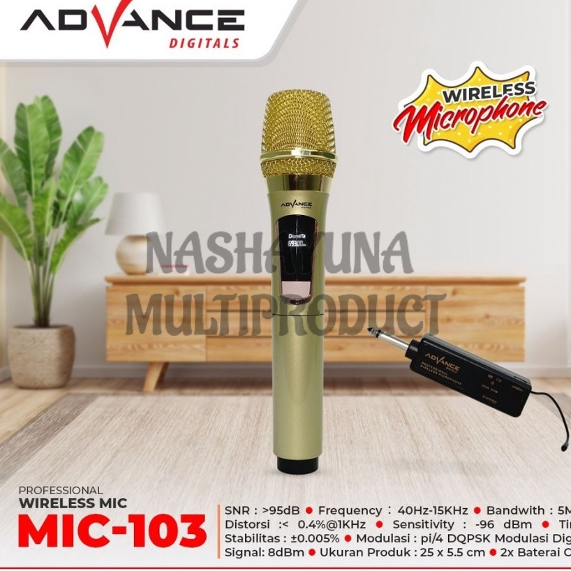 Detail MICROPHONE WIRELEES ADVANCE MIC-103 MIC VOCAL/MIC TANPA KABEL KUALITAS TERBAIK