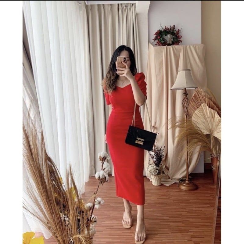 HERFIT Dress Bahan wedges stretch Ukuran S-M+ muat Bagian belakang seleting