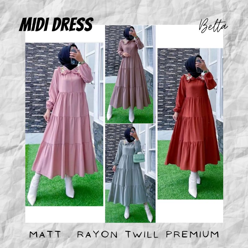 Midi Dress Rayon Twill Premium Busui Friendly Long Tunik Fashion Muslim Korean Style Bahan Rayon Twill Rayon grade A Motif, Jahitan dan pola standar