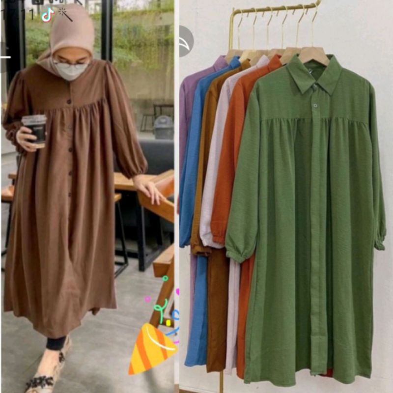 MIDI LONGDRESS CRINKLE AIRFLOW//ATASAN WANITA BUSUI FULL KANCING MASA KINI
