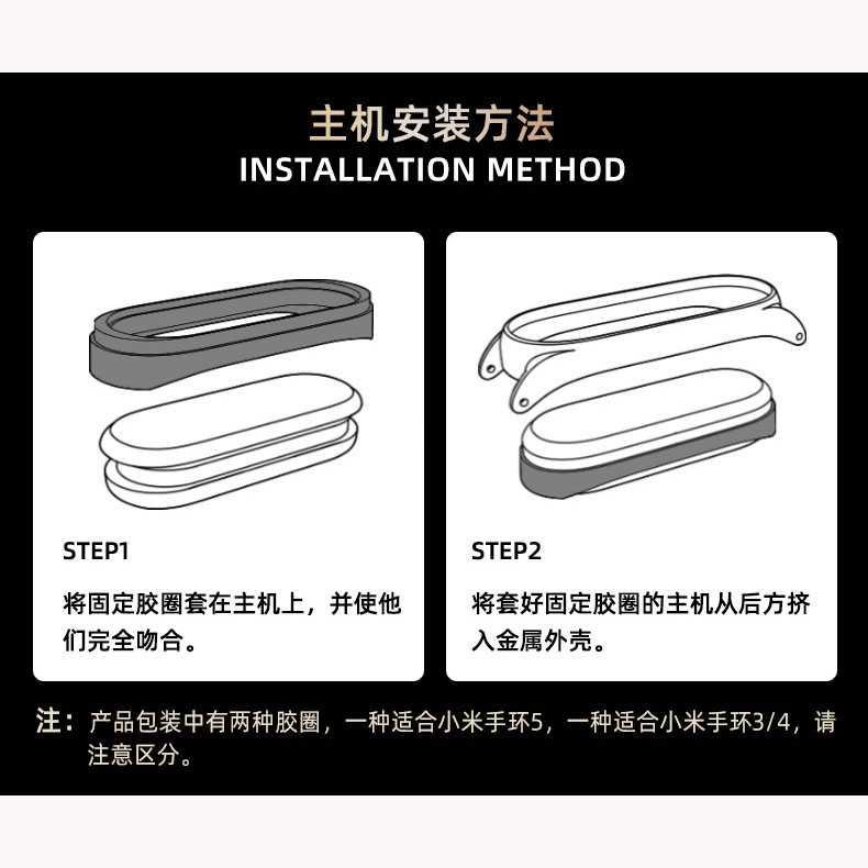 Kompatibilitas Desain dari watchband ini sangat fit untuk Xiaomi Mi Band 3/4/5/6. Anda cukup menyelipkan Xiaomi Band ke dalam slot strap yang tersedia.