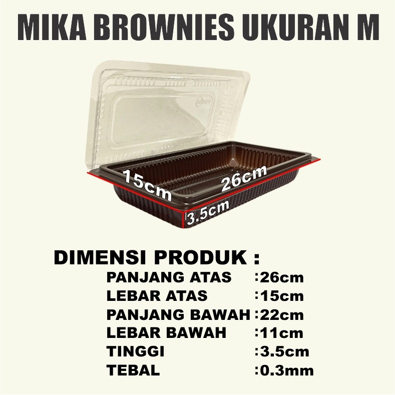Mika Brownies M Dus 250pcs Ukuran Sedang Harga Rp. 237250 untuk 250 pcs per dus = Rp. 949 / pcs 1 pack isi = 50 pcs 1 Dus = 5 pack x 50 pcs = 250 pcs