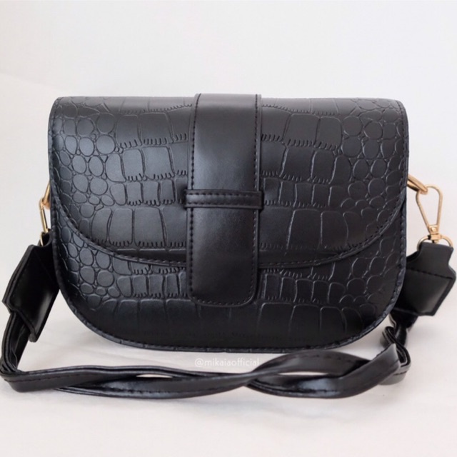 Tersedia dalam 3 pilihan warna: Brown, Sage Green, Black Material: Vegan Leather (Motif Croco) Size: 19 x 7 x 12 cm (pxlxt) Panjang Strap: 45cm (tali pendek), 115 (tali panjang, bisa di adjust) Sudah termasuk dust bag