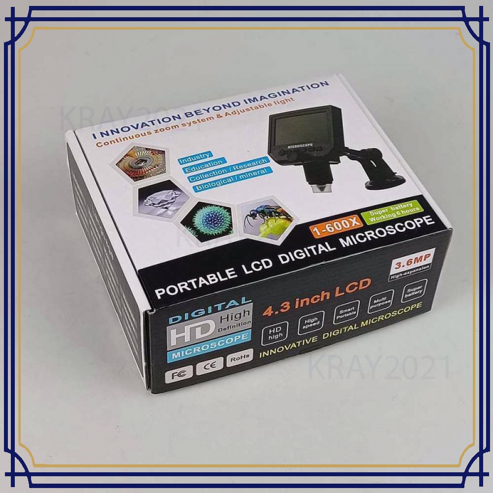 Mikroskop pada awalnya hanya digunakan untuk pengamatan di lab-lab saja. Namun kini, Anda bisa memilikinya di rumah. Mikroskop ini dibekali monitor yang dapat menampilkan hasil pembesaran objek dari lensa kameranya. Dengan pembesaran hingga 600x, mikroskop ini dapat digunakan untuk berbagai kebuutuhan mulai dari kebutuhan belajar mengajar, reparasi barang elektronik dan masih banyak lagi. Dengan pengoperasiannya yang mudah, siapa pun bisa menggunakan mikroskop ini.