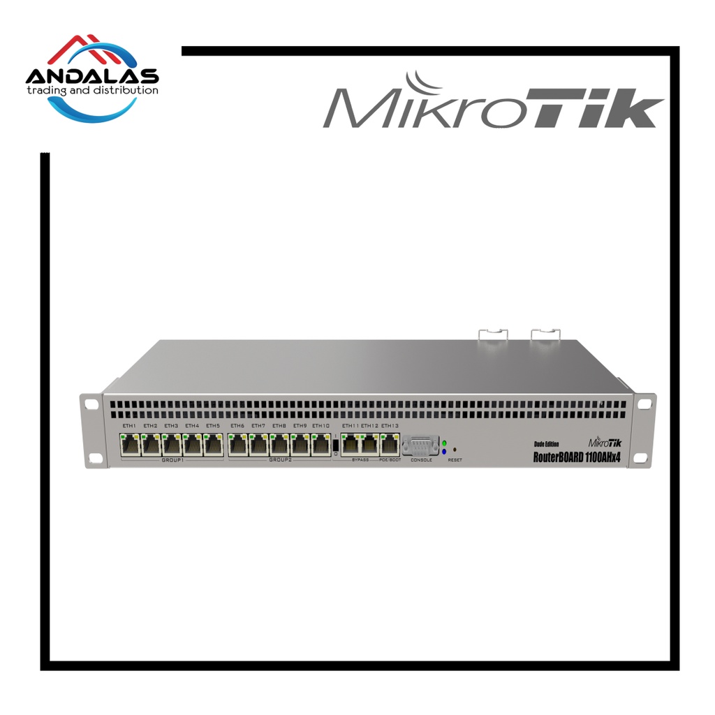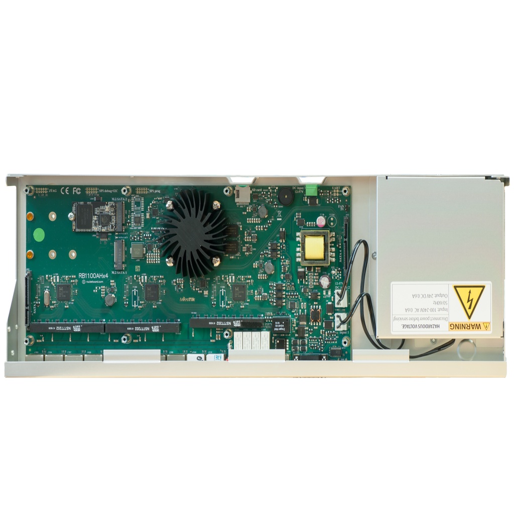 Product code RB1100Dx4 Architecture ARM 32bit CPU AL21400 CPU core count 4 CPU nominal frequency 1.4 GHz Switch chip model RTL8367 Dimensions 443 x 148 x 44 mm RouterOS license 6 Operating System RouterOS Size of RAM 1 GB Storage size 128 MB Storage type NAND MTBF Approximately 200'000 hours at 25C Tested ambient temperature -40°C to 70°C IPsec hardware acceleration Yes