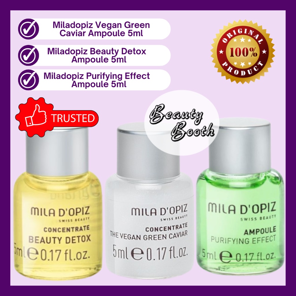 Paket Terdiri dari : - Miladopiz Vegan Green Caviar Ampoule 5ml - Miladopiz Beauty Detox Ampoule 5ml - Miladopiz Purifying Ampoule 5ml