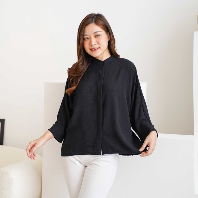 MILEA Blouse Oversized - Atasan Cringkle Polos - Kemeja Kerja Jumbo- Kemeja Basic- Blouse kemeja Formal Kerja