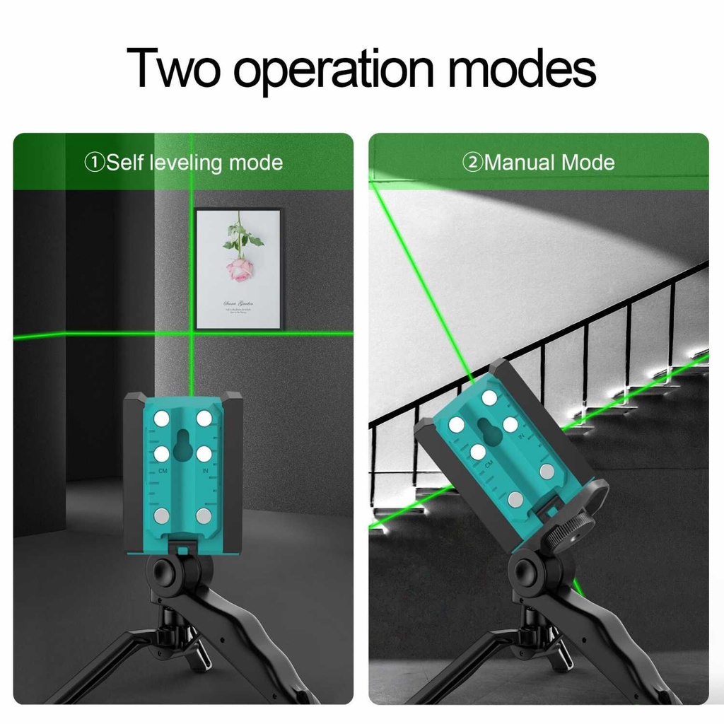 Tetap Stabil di Berbagai Posisi Untuk keseimbangan garis laser yang maksimal, laser level telah dilengkapi dengan tripod, velcro, dan bodi magnet. Anda dapat memposisikan mesin ini bersama dengan tripod, digantung ke pilar menggunakan velcro, atau menempelkannya pada tiang logam.