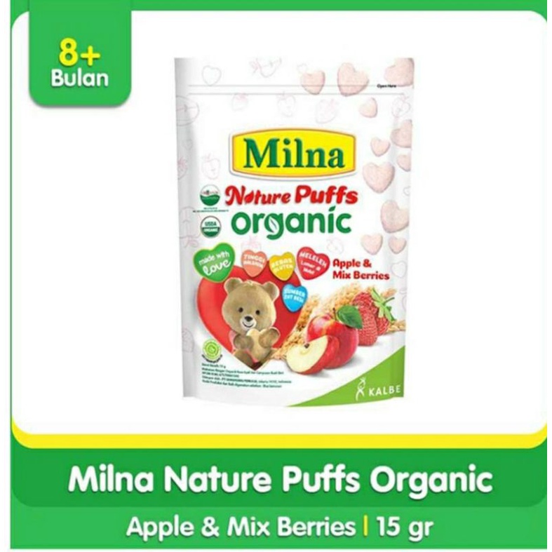 Ibu & Bayi > Susu Formula & Makanan Bayi > Camilan Bayi > Milna Nature Puffs Organic Apple &MixBerries 1 5G