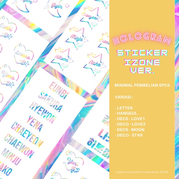 FANMADE IZONE HOLOGRAM STICKER ✨Pilihan Nama Member ✨Hasil Cuttingan Clean & Rapih ✨Bisa Ditempel Jadi Hiasan Laptop, Lightstick, Tempat Pensil, Buku, Handphone, Kulkas dll