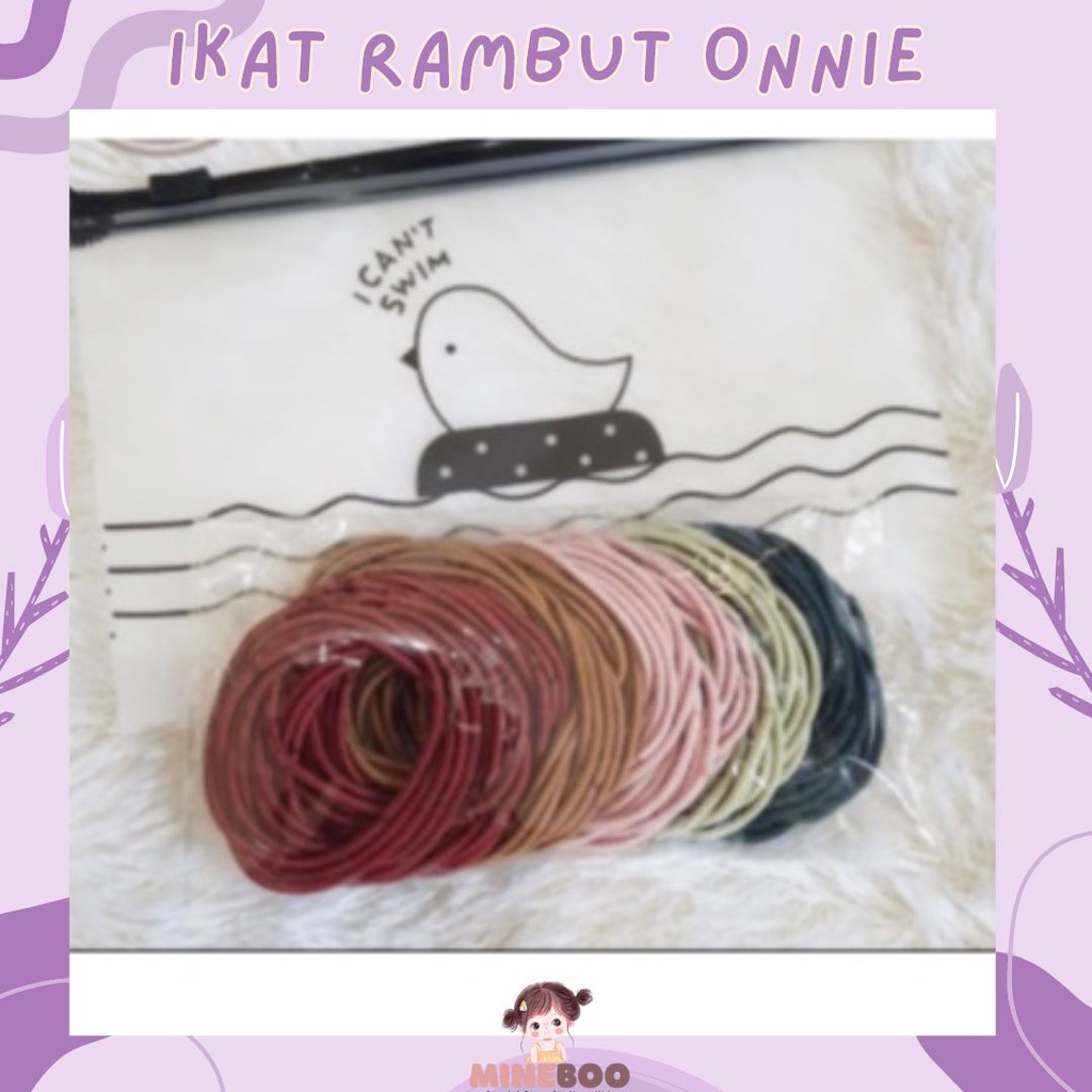 Detail mineboo - IKAT RAMBUT ONNIE 100pcs + pouch ikat rambut karet polos warna-warni anak dewasa import ala korea