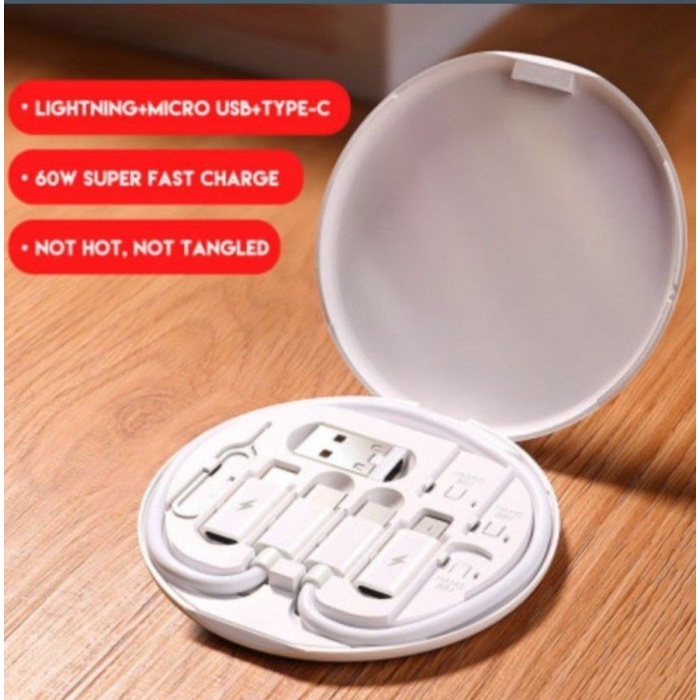 Buat Kamu yang suka traveling dan memiliki smartphone lebih dari satu, suka ribet bawa kabel cas yang berbeda konektor ini solusinya. Dalam paket ini sudah dilengkapi dengan kabel Type-C to Type-C, konektor USB, iPhone, Micro, dan ejector sim card.