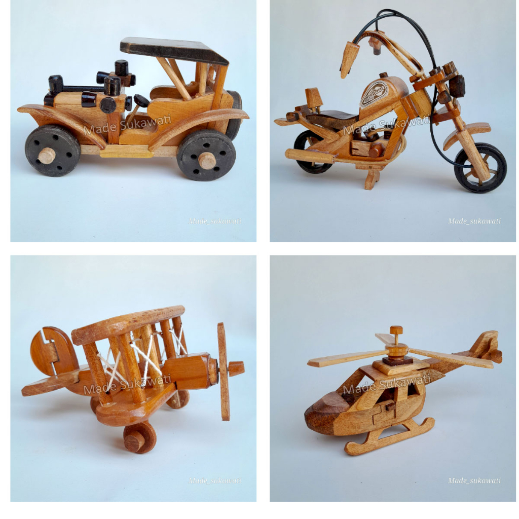 Kerajinan kayu miniatur mobil klasik,pesawat,hrlikopter,motor,