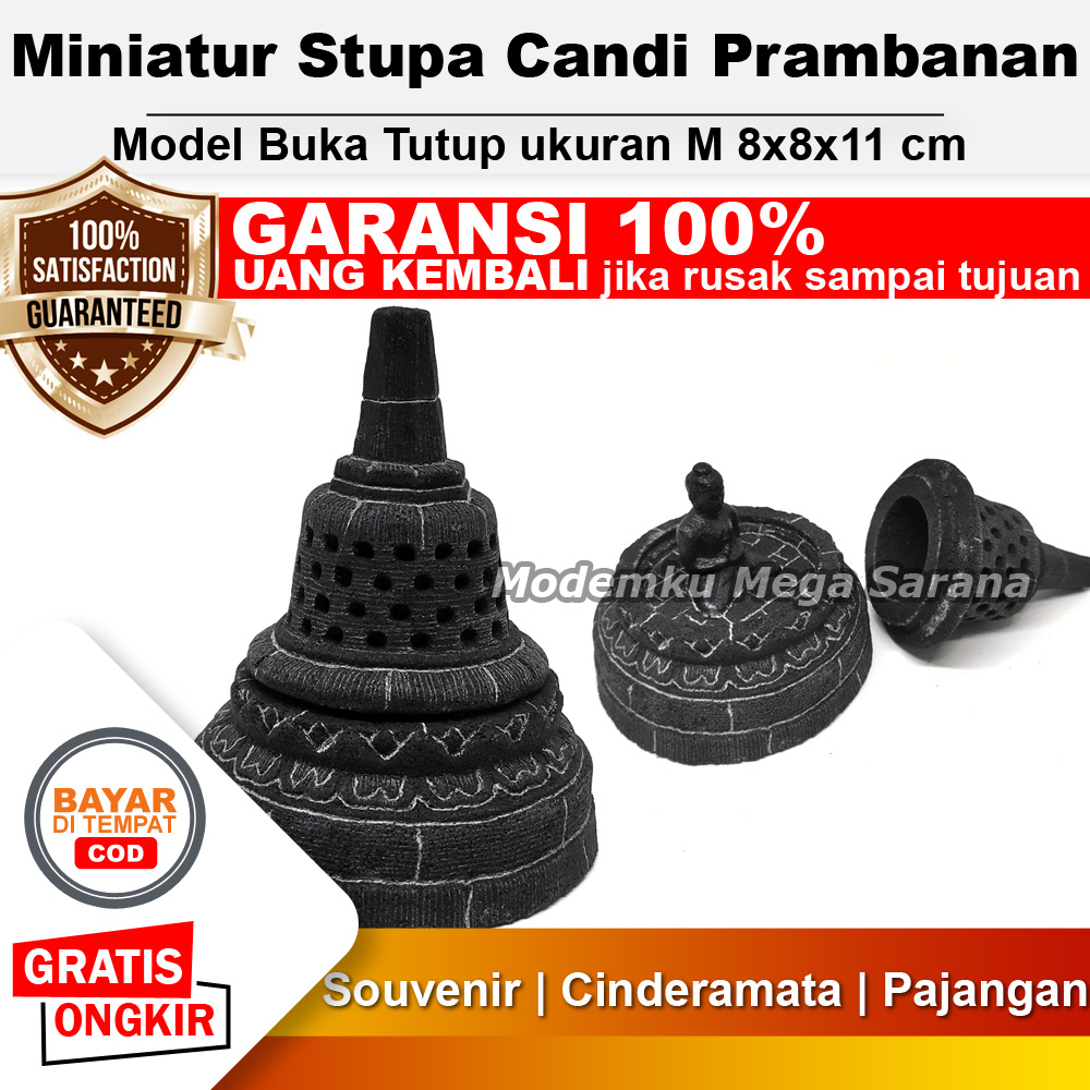 Miniatur Stupa Candi Borobudur Ukuran M - 8x8x11 merupakan miniatur Stupda Candi Borobudur yang dibuat oleh pengrajin dari Jogja. Bahan dari miniatur ini adalah campuran batu dihaluskan & pasir yang dicetak membentuk Candi dengan guratan2 yang mempertegas relief candi sehingga hasil akhirnya menyerupai batu seperti aslinya. Stupa ini bisa dibuka, dimana didalamnya terdapat Patung Budha seperti aslinya.