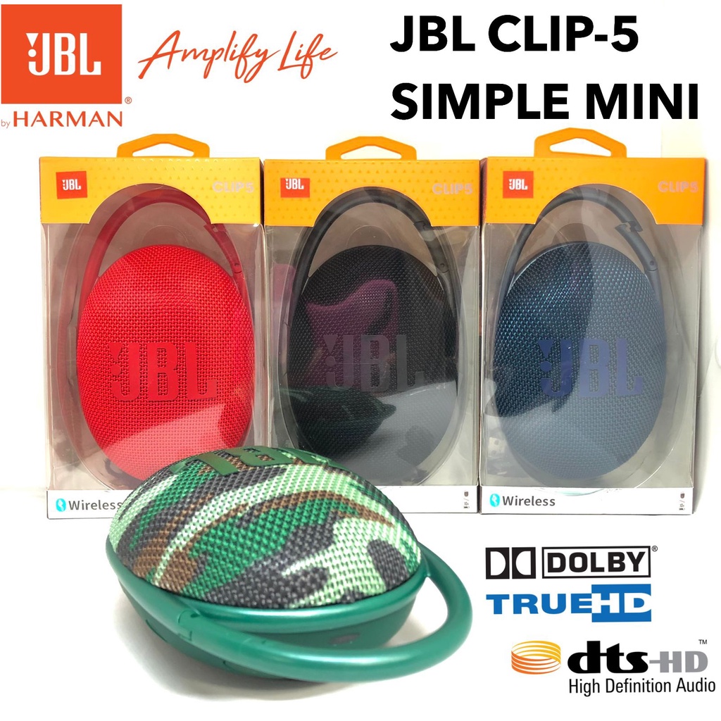 Spesifikasi CLIP 5 parameter : - Product Model : CLIP 5 - Bluetooth version : 4.1 - SNR : Z80dB - Bluetooth Distance : > 10M - Battery Capacity : 800 mAh - Basic features : USB+AUX+FM+Bluetooth - Running Time : 5 Hours - Package accessories: Manual Book + Cable Micro USB - Volume of one piece : 0.096m³ - Product Speaker Size : 138*88*44mm - Speaker Specification : 52mm - Output Power : 3W - Rated Voltage : DC 5V - Features : Two in series ( simultaneously playing ) - Sound box material : ABS+ covering cloth - Packing size : 163*111*46mm