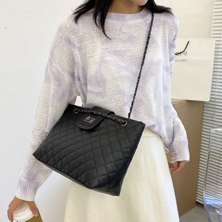 Minimalist Plaid Quilted Twist Lock Chain Shoulder Tote Bag 10006