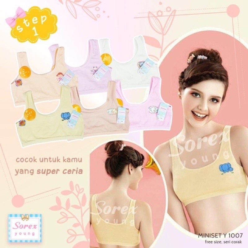 Miniset anak perempuan step1 Diperuntukan anak perempuan yang memasuki tahap awal pertumbuhan payudara. Terbuat dari bahan strech yang lembut dan dapat menyerap keringat dengan baik. Bahan nyaman dengan karet elastis sehingga tidak sakit saat digunakan.