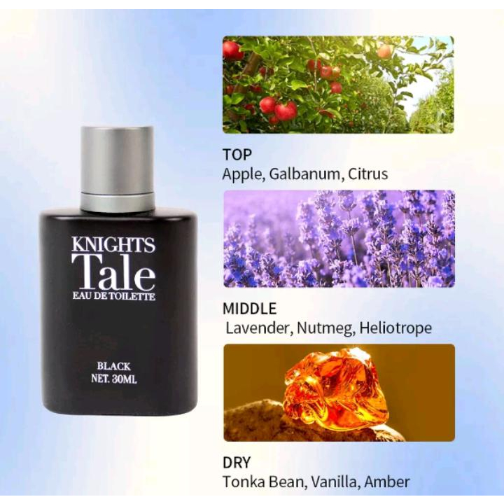 Detail miniso parfum pria Knights Tale Eau De Toilette 30ml