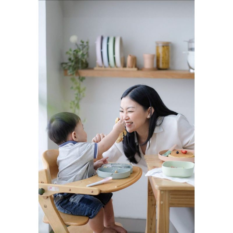 Silifold | Compact companion for portable meals (4+months) - Piring food-grade silicone dengan suction yang dapat dilipat, sangat cocok dibawa ketika makan ke resto maupun di rumah. Unfold piring untuk mendapatkan dua sisi piring, satu sisi untuk main course, dan sisi satunya lagi untuk side dish.