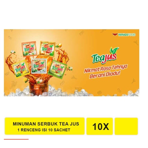 TeaJus adalah minuman serbuk instant yang dapat disajikan dengan berbagai cara seperti dihidangkan bersama dengan ES Teajus, berupa minuman serbuk instan rasa teh yg utama dgn berbagai varian rasa pendamping yg unik.