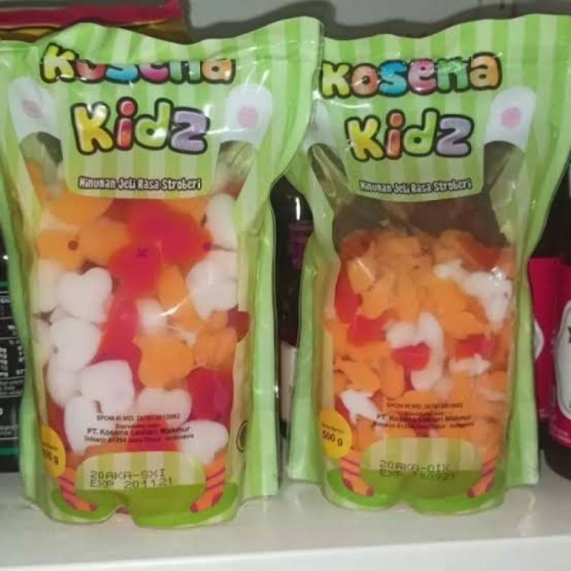 Merk Kosena Kids Tersedia Berbagai motif karakter Kelebihan merk ini ketimbang merk lain ; Air jelly nya yang bisa langsung diminum, kalau merk lain yg digunakan hanya jelly nya saja Dan sudah terdaftar BPOM (Sertifikat Halal MUI)
