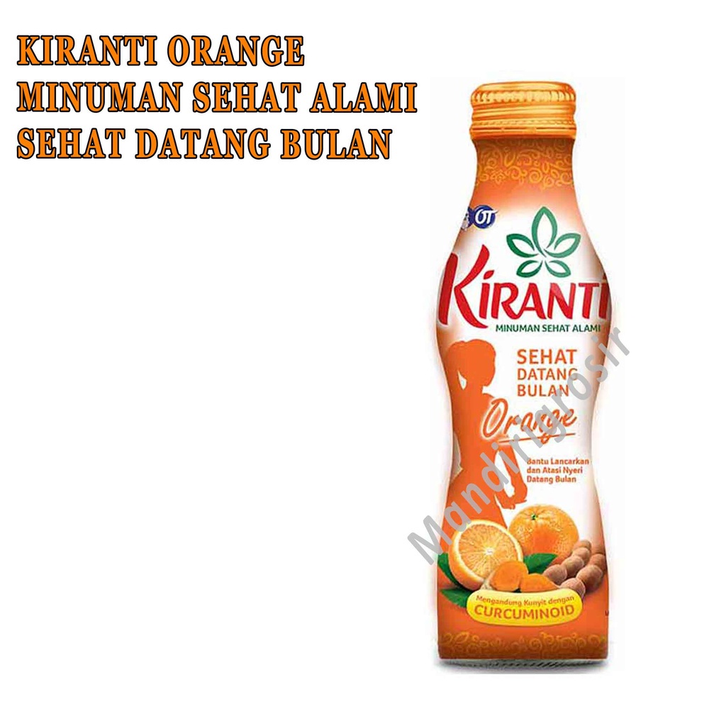 OTHER DETAILS : Kiranti sehat datang bulan plus orange juice merupakan minuman sehat alami berkhasiat yang terbuat dari kunyit segar, sari jeruk asli untuk rasa yang lebih enak dan segar dan 100% bahan-bahan alami pilihan yang diproses secara hygienis dan modern sehingga aman untuk dikonsumsi sehari-hari sasuai anjuran.