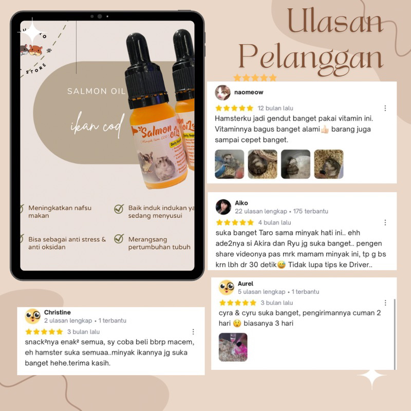 Detail minyak hati ikan cod oil, nutrisi harian hamster , kucing , SG