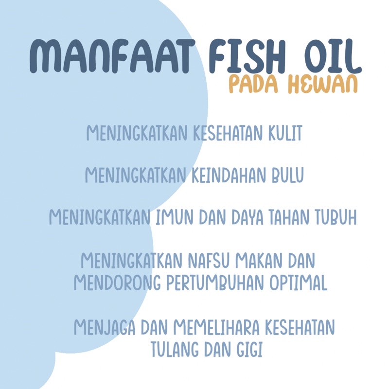 🐾MANFAAT UNTUK HEWAN🐾 ASAM LEMAK ESENSIAL, DENGAN VITAMIN A & D - Bermanfaat untuk jantung, sendi, tulang, gigi, kulit dan bulu - Menjaga dan memelihara kesehatan tulang dan gigi - Meningkatkan nafsu makan dan mendorong pertumbuhan optimal - Meningkatkan imun dan daya tahan tubuh - Meningkatkan kolesterol baik (HDL) dan mengurangi kolesterol jahat (LDL)