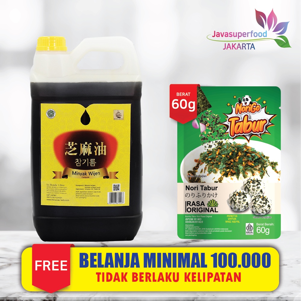 MINYAK WIJEN MOLUCCAS 5 LT Minyak Wijen Moluccas - Minyak Wijen yang kami jual sudah berlogo Halal dan juga telah mendapat sertifikasi dari BPOM. - Minyak Wijen Java Super Food digunakan juga oleh restoran-restoran ternama di Indonesia .