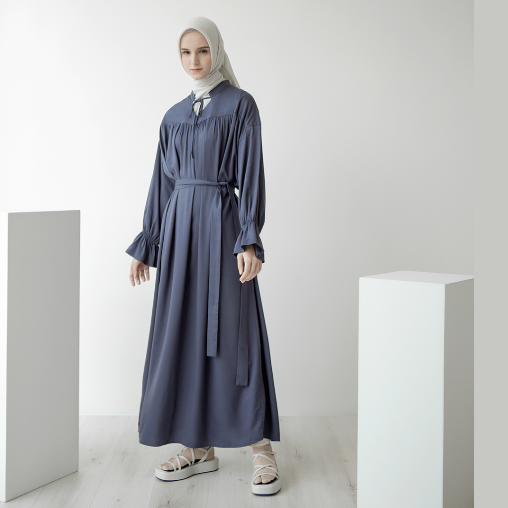 Fashion Muslim > Dress Muslim > Gamis > Mira by Aska Label - Gamis wanita Muslim dress wanita bahan rayon premium details kerut warna beige, dusty blue, dark blue navy, hitam black