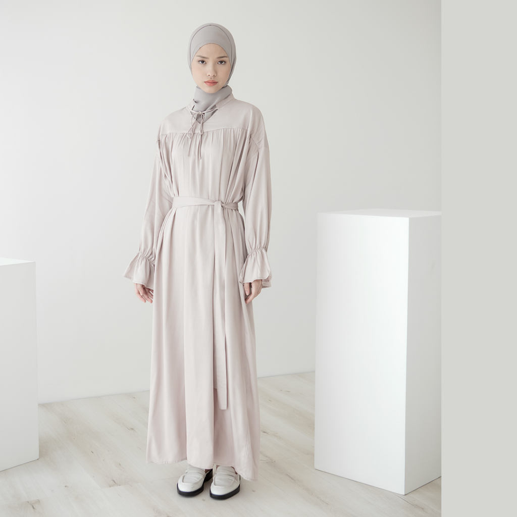 Gamis dengan detail kerut pada bagian badan dan lengan